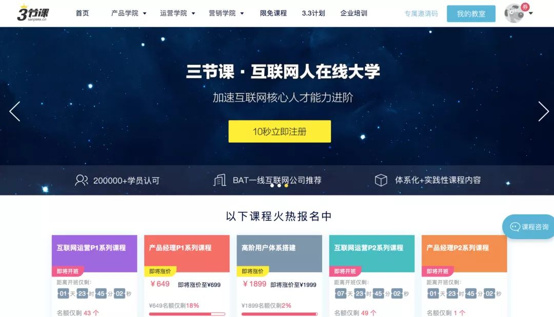 三节课是一所专注“能力提升”的互联网人在线大学,提供专业成体系的线上课程,希望可以帮助互联网人真正掌握技能,解决“做不到”到“做到”的难题。