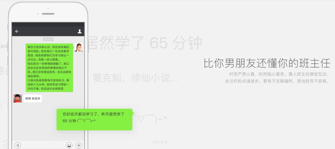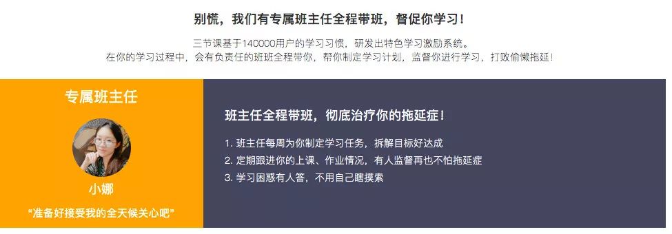 在线教学类产品中的“班主任”角色,不仅是为学员制定学习任务,还会定期去监督、跟进学员的学习和作业提交状况,甚至承担了答疑解惑的作用。一边是陪伴,一边是服务和成长。