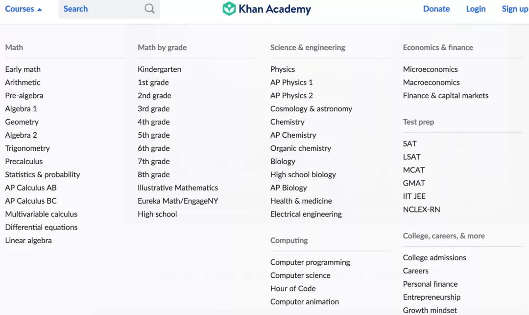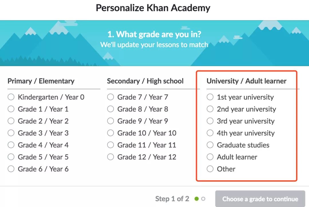 此前,很多人对可汗学院对印象只是停留在k12教育的水平,其实可汗学院有严格的年龄分层,即便你是大学生或者已经毕业工作的成人,也可以使用可汗学院进行学习。而课程涵盖面丰富,涉及金融和经济学,科学,数学,艺术与人文,计算机编程,甚至大学职业选择及创业等相关课程。