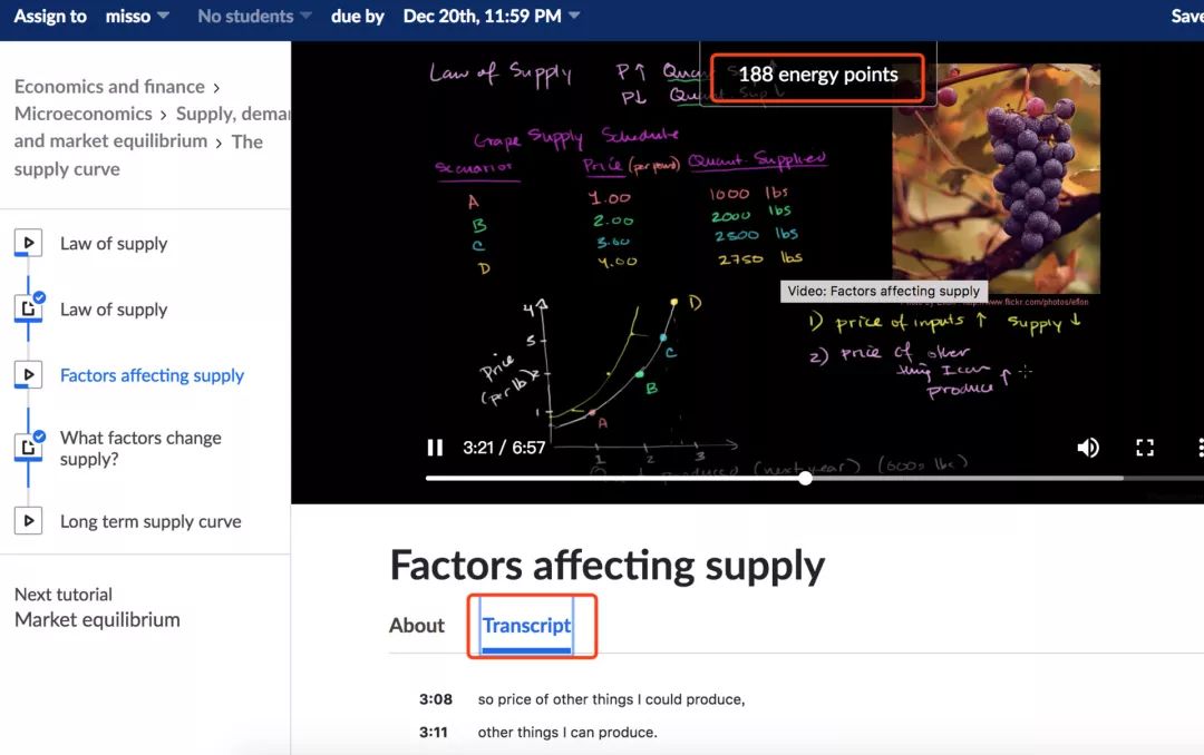 我选择了一门经济学和金融学里的需求与市场均衡供给课程,来简单的展示说明一下可汗学院的课程设计逻辑。