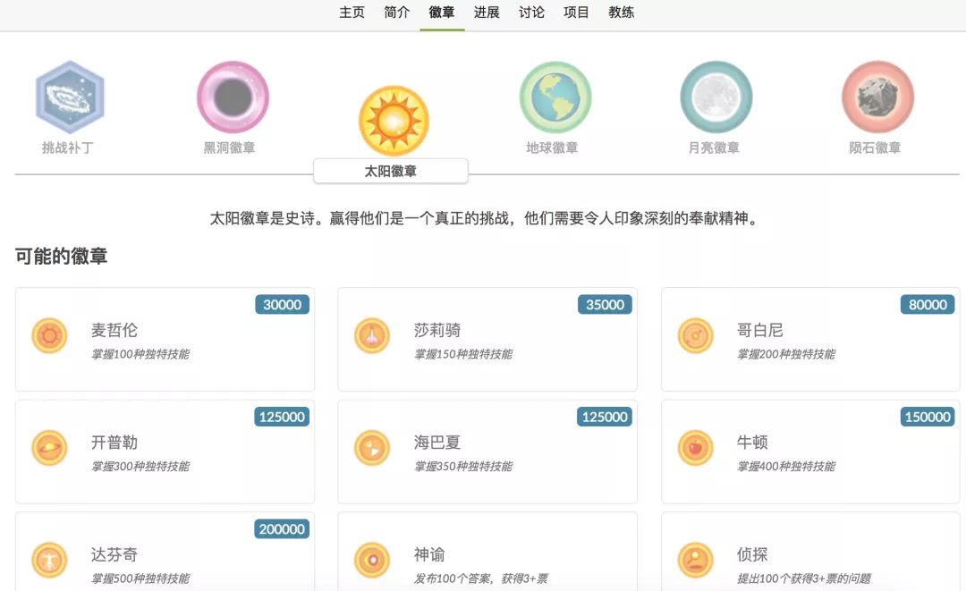 不过我在查阅可汗学院能量分的时候,也看到一位家长晒出的他孩子获取的奖牌。据说这个奖牌是根据孩子或学员的特定行为进行发放。一些奖牌是同能量分有关的,而另一些则同能量分无关,例如可能会同掌握程度、速度有关,或者同建立社区、学习计算机课目相关。