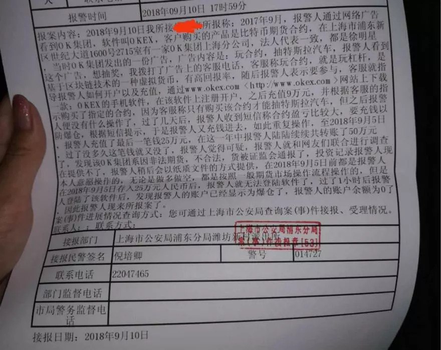 9月10日晚,有虚拟货币投资者向猎云网(微信:ilieyun)爆料称:虚拟货币交易平台OKEx、OKCoin9月5日出现杠杆合约大规模爆仓,部分用户认为是平台蓄意爆仓,通过非法手段获取用户资产,大批维权者正赶往其上海分公司,力求向OK集团创始人徐明星讨个说法。该爆料者还表示,徐明星涉嫌数字货币欺诈,正在接受上海市浦东新区潍坊新村派出所的协助调查。
