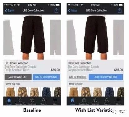 下图的案例,就是弱化心愿单按钮的存在感,让用户更多的聚焦在直接购买而不是收藏,最终让销售额提高了35%。