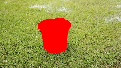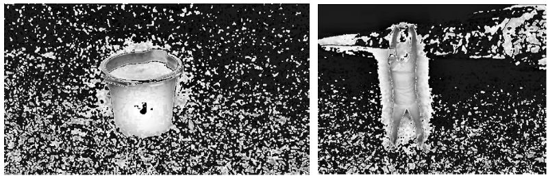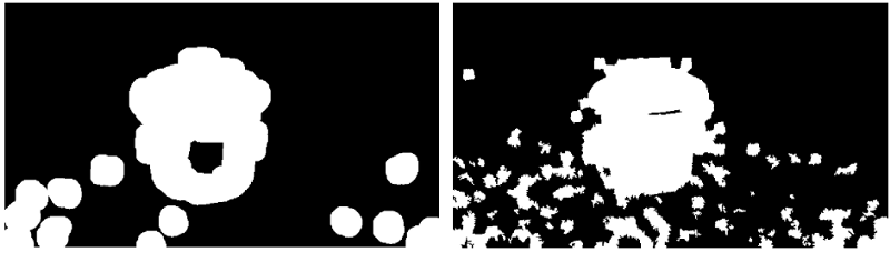 细粒度显著性方法(左)和二值化Aggressive显著性方法扩张后的水桶图像