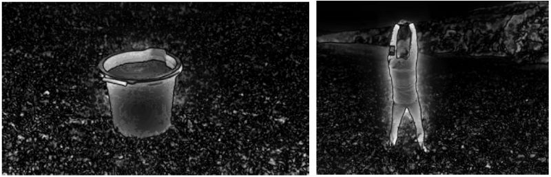 显著性图像的例子。左边的水桶和右边的人就是感兴趣的目标。