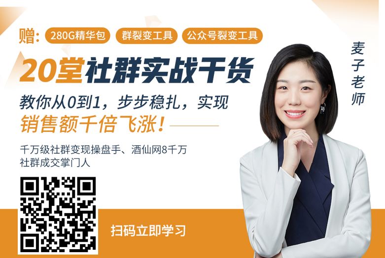 此外,麦子还为大家准备了有效的裂变工具包(价值1800元),购买课程后联系老师即可免费获得!
