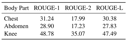 为量化生成报告的质量,这份研究使用了ROUGE分数作为评估指标。该指标衡量了生成文本和真实文本的重合度。