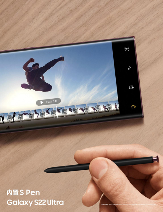 在此次推出的Galaxy S系列中,三星Galaxy S22 Ultra融合了Note系列设计语言,S pen延迟低至2.8ms,并且通过 AI 学习预判用户下笔位置,可以提供无限接近纸张的书写手感。三星只此一家的体验,为S22 Ultra的体验增加了厚度。