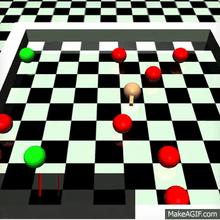 CPO 学习到了一个策略,可以尽可能多地搜集绿色苹果,同时被约束不得在每条轨迹上搜集多于平均 0.1 个红色炸弹。