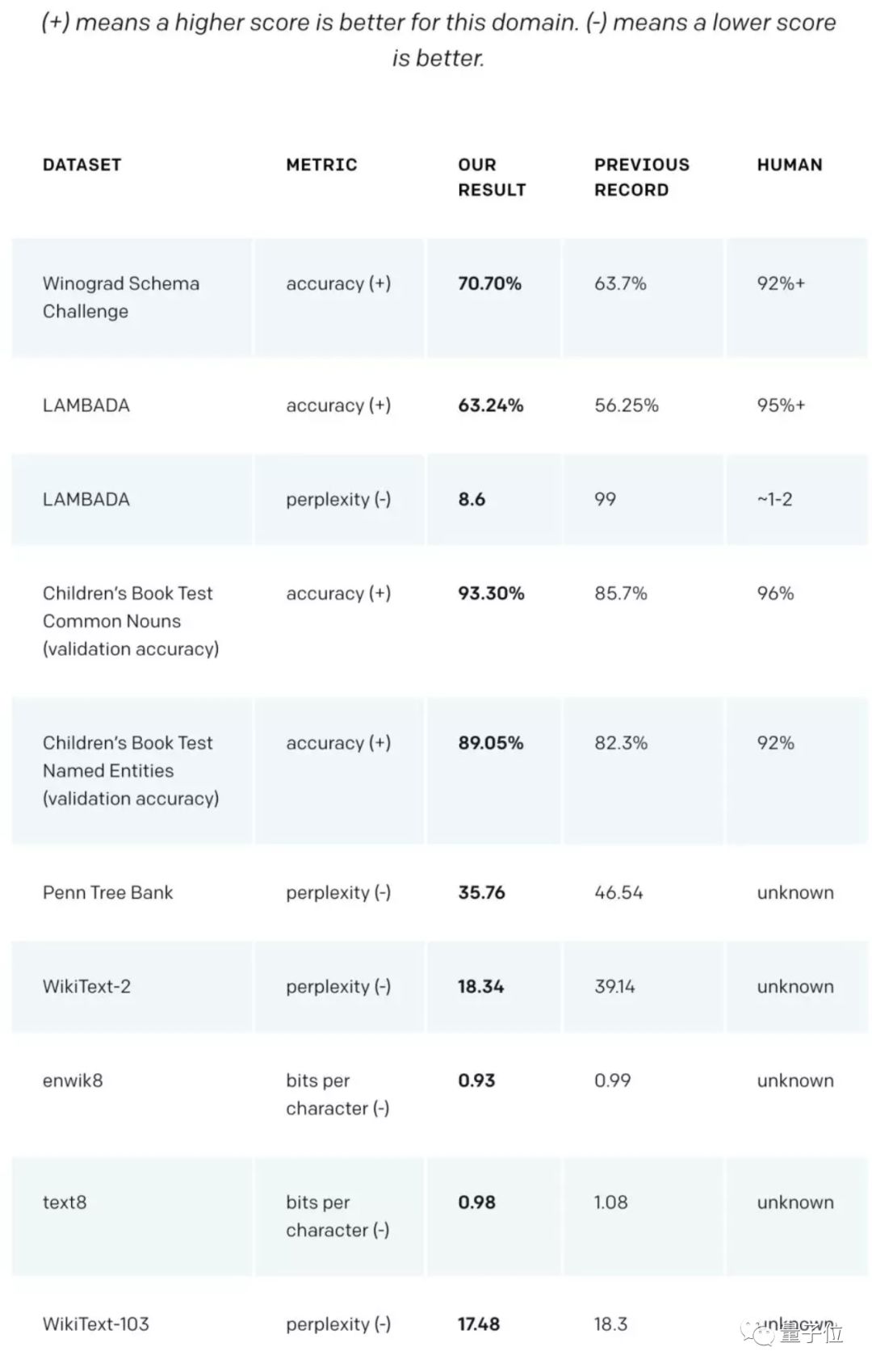 作为一个没有经过任何领域数据专门训练的模型,它的表现比那些专为特定领域打造的模型还要好,横扫各大语言建模任务。