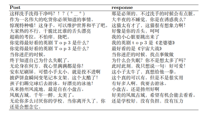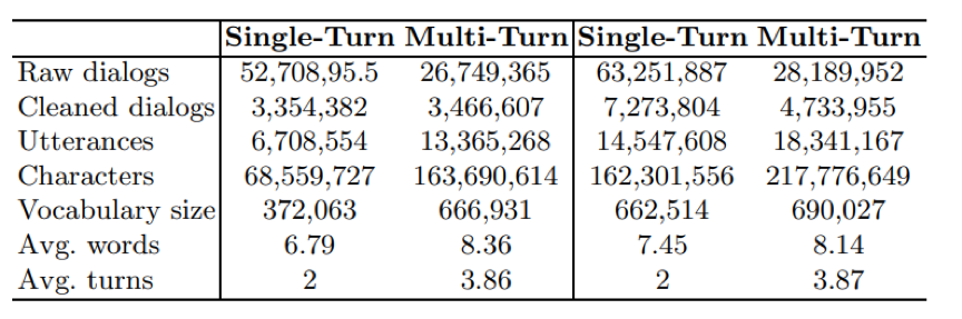 表2. 数据统计信息,左侧为LCCC-base,右侧为LCCC-large