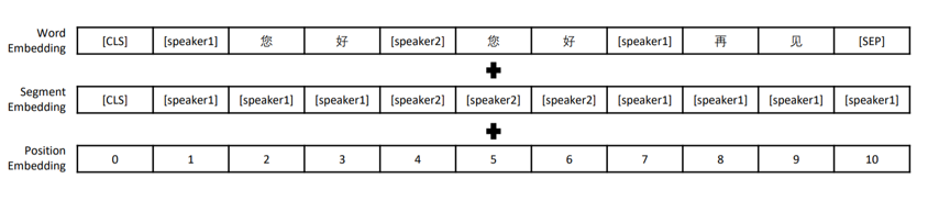 该模型拥有12层Transformer结构,我们按字分词,字典大小13088,字向量维度768,最长上下文长度为513。我们沿用TransferTransfo的方式对对话进行建模,即把对话历史拼接为长文本,并使用段分割向量加以区分。具体来说:我们使用[CLS]字符标志文本起始,在段落后使用[SEP]字符表示段落结束,在段落中对相邻轮次对话使用[speaker1]、[speaker2]交替分割,并在segment embedding中使用[speaker1]、[speaker2]进行编码。图1为输入数据示例。