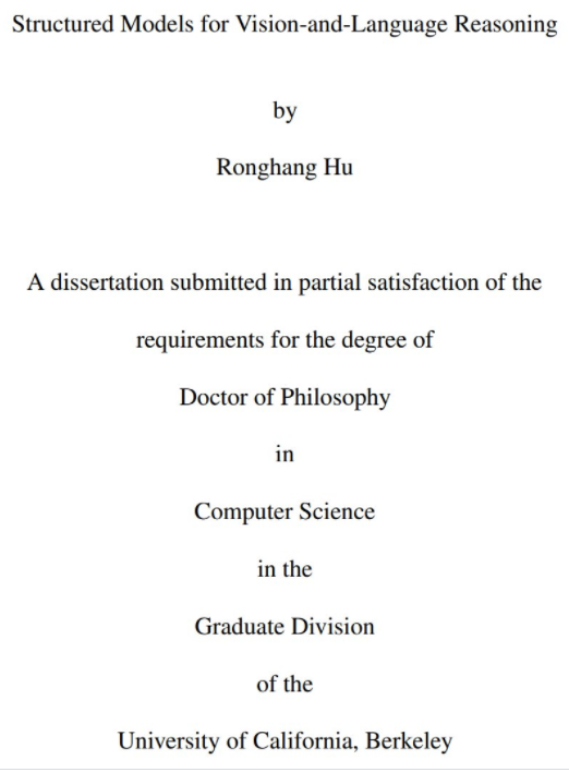 UC 伯克利大学计算机科学博士胡戎航(Ronghang Hu)的博士论文新鲜出炉,内容涉及视觉与语言推理的结构化模型。