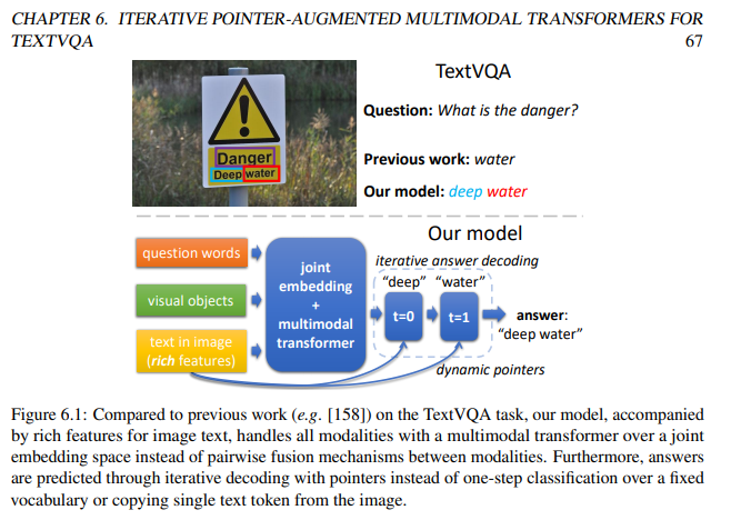 在第六章中,该研究使用迭代式指针增强多模态 Transformer,来解决从图像中读取文本并回答问题的任务(即 TextVQA 任务)。