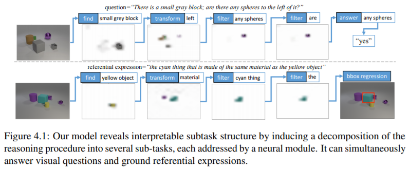 这篇论文从指示表达定位(referring expression grounding)任务开始,使用 Compositional Modular Network (CMN) 来考虑这些表达中的组合结构,进而显著提高准确率和泛化性。