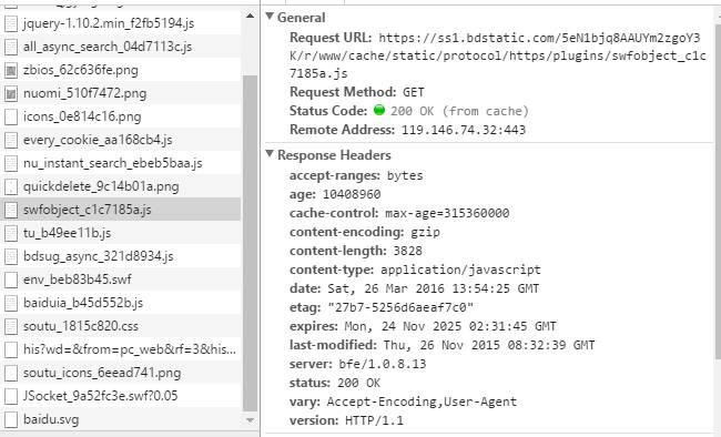 我们在访问百度首页的时候,会发现不管怎么刷新页面,静态资源基本都是返回 200(from cache):