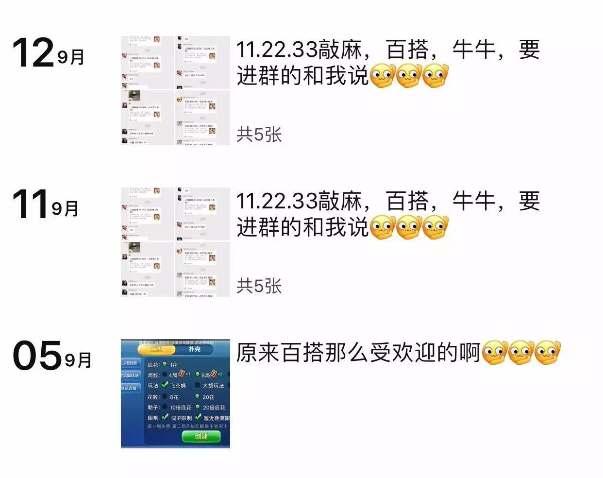 像King这样的“房卡”代理商就是依靠朋友带朋友,朋友再带朋友加入的方法,将陌生人组成一个个百人以上的麻将群。