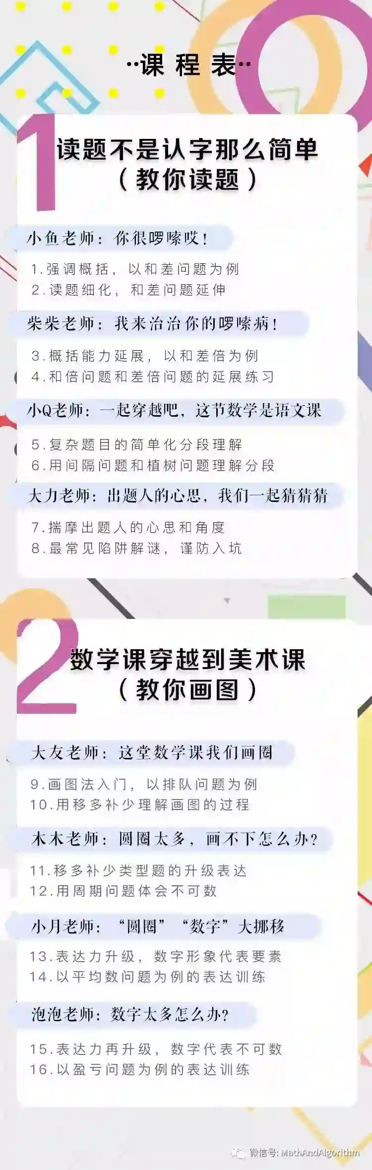 以排队问题、移多补少和周期问题为例,你的孩子会学会通过画图,用形象事物提高思维能力和表达能力。
