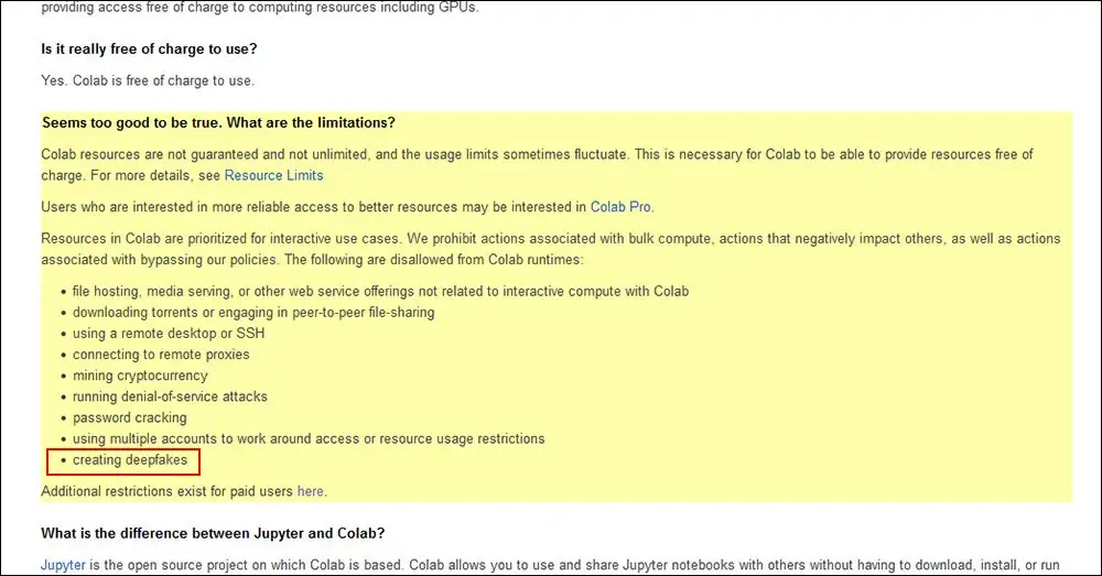 就在Colab最近的一次更新中,谷歌对Deepfake发布了“禁令”:不再允许用户在网站上训练该模型。