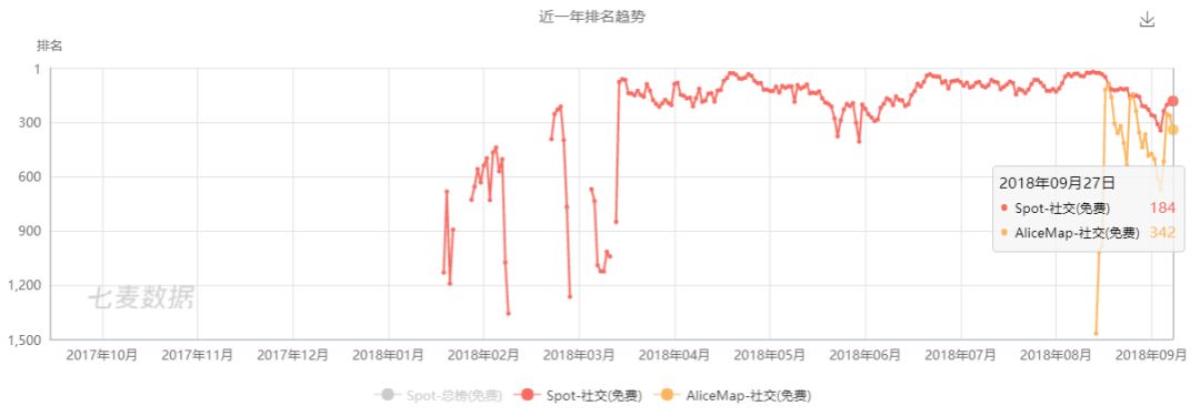 总体来说,如果单纯从下载数据看,Spot和AliceMap都要比echo和POP表现要更好一些。尽管从App Store的排名来看,两家的日下载量在500-1000左右,和echo与POP比也就是五十步笑百步的水平。