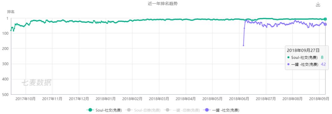 从App Store的排名来看,这两款产品的数据还算不错,soul在融资完成后基本长期稳定在社交榜前十,而一罐也是基本没怎么掉出过前100。