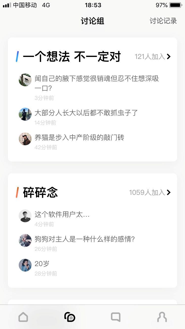 soda倒是整体透出一种简化版的即刻或者豆瓣的味道。话题的功能很好的提供了更高质量的内容与更高质量的互动。对于早期用户来说,这个功能太重要了。