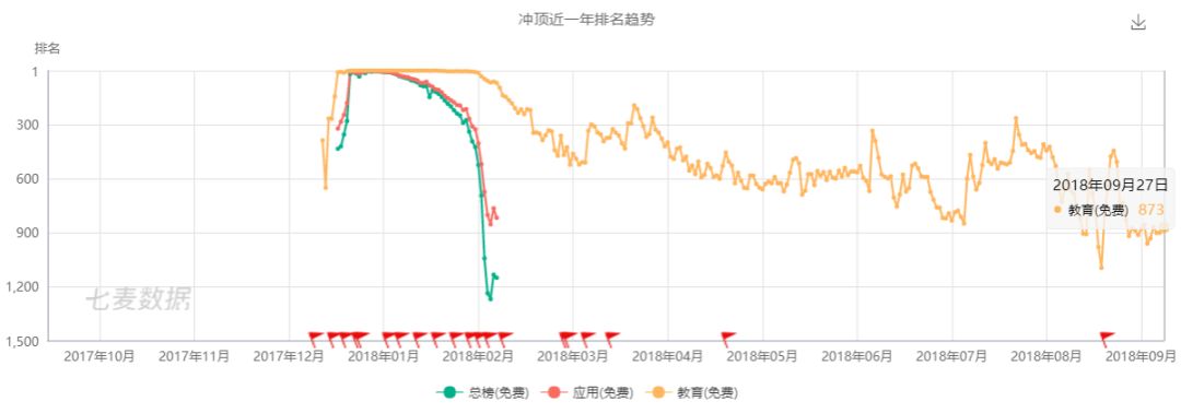 从榜单第一掉到了目前教育分榜800+,冲顶正在冲击底部