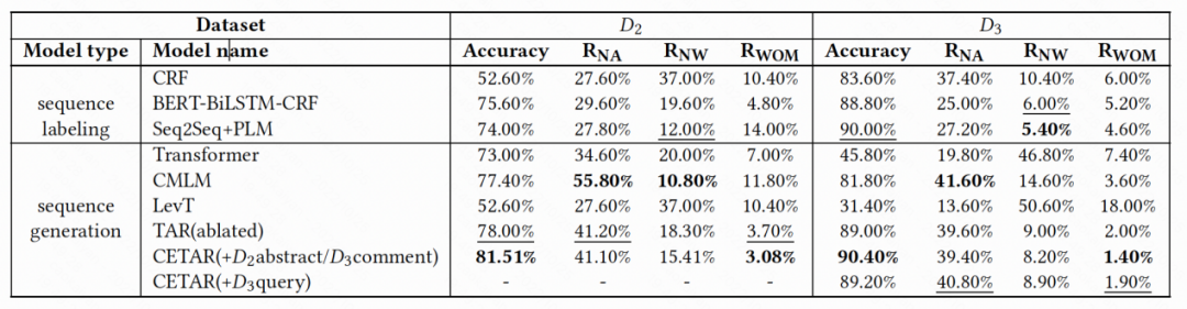 1. 在命中率和准确性方面,我们的 CETAR 在通用领域数据集(