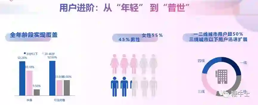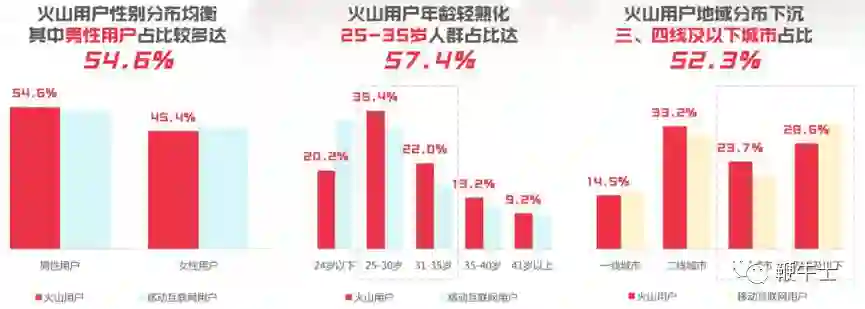头条系旗下火山小视频用户下沉更明显,三四线及以下城市用户占比超过50%。抖音平台聚焦一二线城市用户,但三线及以下城市用户比例也在不断增长。