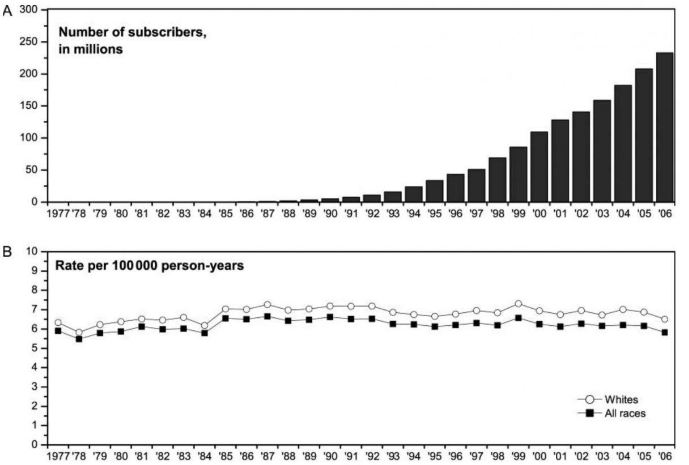 关于WiFi辐射流传最广的一个阴谋论是,它对恶性脑瘤的生长负责。但证据显示,尽管WiFi的使用和设备已经成为主流,癌症发病率仍然没有提高。