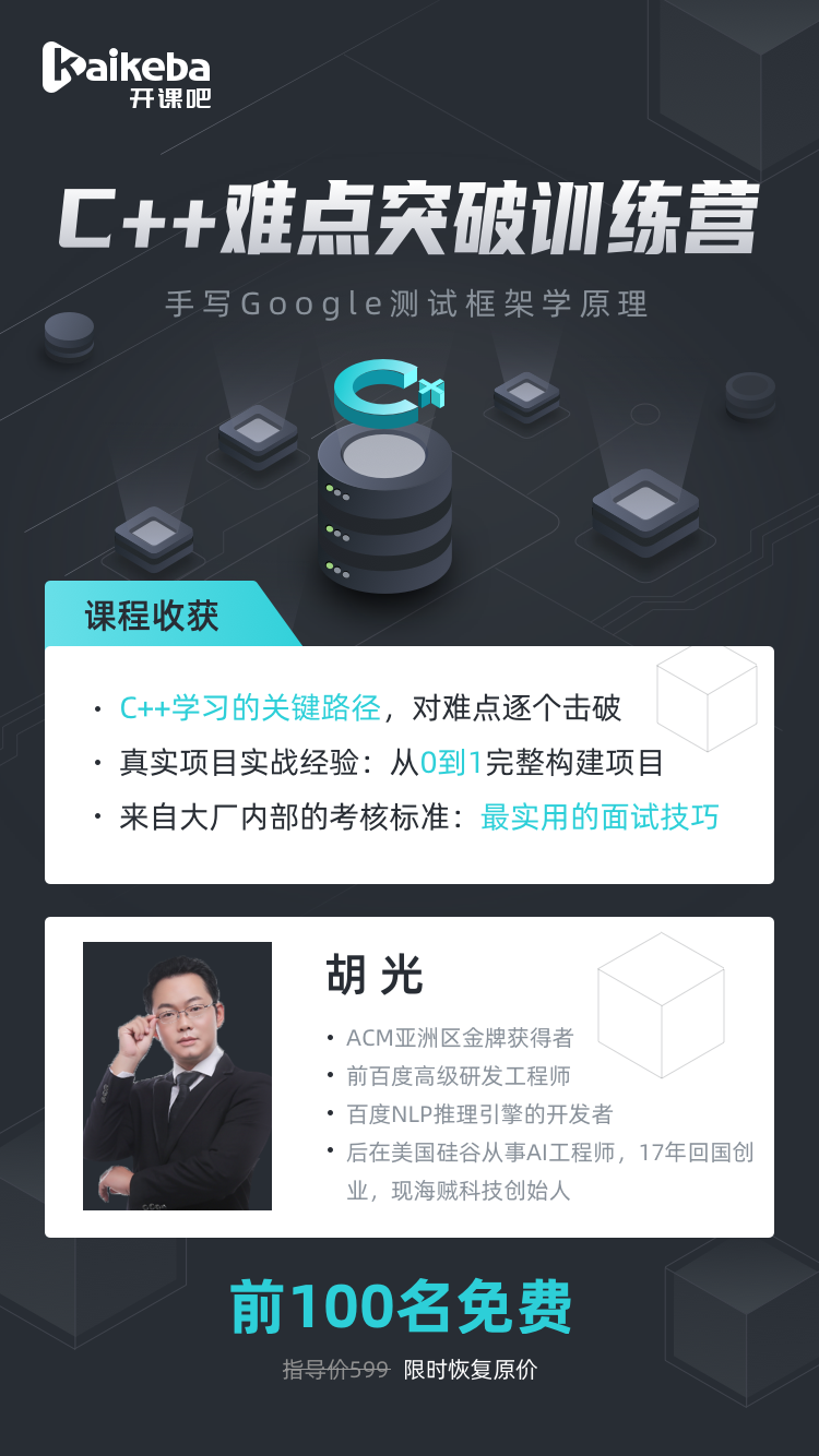 而且会重点带你经历,从GoogleTest实现原理到构建项目的全流程,让你能够从0到1独立开发一个C++项目,快速提升项目能力!