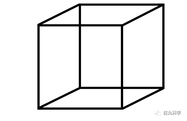 乍一看隐隐感觉有些不对,但又想不通问题出在哪?其实我们可以先来了解一下与它相似的知名视错觉构图,「内克尔立方体」。