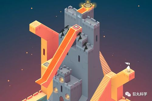 看完这些感觉有点神奇?不过《纪念碑谷》的厉害之处不仅仅在于引经据典,更具技巧性的是游戏利用强迫透视、错位等方式,让「不可能图形」在游戏中变成了「可能存在」的机关。