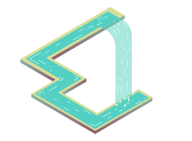 游戏中还有这种简单的V字型瀑布,简洁有趣,堪称我灌我自己: