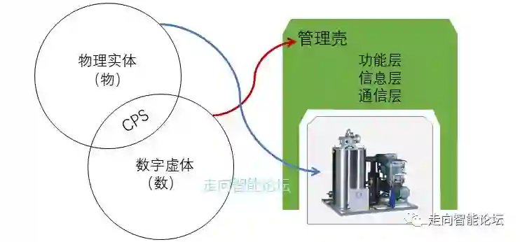 上图中控制装置的最终进化结果,恰恰是在前面提到RAMI 4.0中所描述的管理壳软件与物理设备的融合与集成,当一个物理设备作为“物件”加上管理壳之后,就形成了CPS。