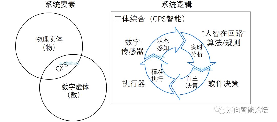 在意识人体对CPS影响的判断上,中国人的理解已经超越了美国、德国对CPS的理解。笔者认为,即使人脑离开系统回路,但是人会以更合理的分工方式专业从事知识生产,未来“人智”会源源不断进入数字虚体而促成越来越多的“机智”产生。貌似两体融合的CPS,实质上还是一种三体融合的结果。可以认为,人的影响力从未离开CPS,并且一直牢牢地主导着CPS的形成与发展。“人智”是智能制造的主导(该观点与中国工程院的HCPS内涵基本一致)。