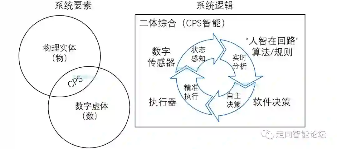 数字虚体与物理实体的交互融合形成了CPS(赛博物理系统)。CPS的面世具有里程碑意义。因为从上个世纪90年代初到本世纪初,日本的第五代计算机项目和“IMS(智能制造系统)”项目失败,人工智能陷入第二次低谷。人们开始寻求一种新的科技手段来构建智能系统。于是在2006年,海伦·吉尔提出了CPS的构想,并且随后得到了德国等工业国家的响应。CPS是工业4.0、智能制造、工业互联网等落地的“最大公约数”和关键使能技术,甚至可以说,未来世界的形式是CPS。
