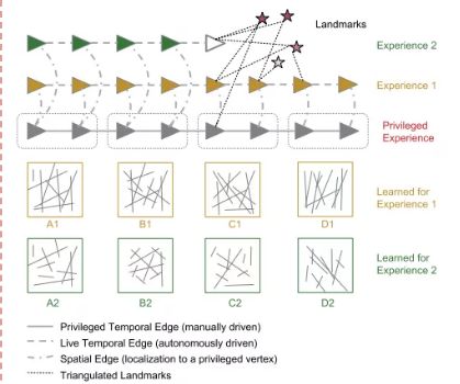 基于视觉的导航极易受到自然场景变化的影响。这可能会在地图创建后的不到几个小时内导致定位失败。为了对抗短期照明变化以及长期季节变化,第二篇文章建议使用依赖于地点和时间的二进制描述符,以在线方式适应不同的场景。这是通过以两种方式扩展GRIEF演化算法来实现的:除了描述符生成的简要比较之外,使用已知的姿势变化和包含LATCH三元组的对应生成。我们展示了自适应描述符优于单个描述符方案,用于在单实验VT&R系统中进行定位,同时保持二进制描述符的效率。通过使描述功能适应不同的环境条件,它允许系统在需要新体验之前运行更长的时间。在白天到夜晚出现极端光照变化的情况下,与SURF相比,我们获得了40%的内部匹配。在季节性变化的情况下,证明增加了70%。增加的对应性导致沿着路径的更多可局部化的部分,分别在照明和季节性情况下增加25%和150%。