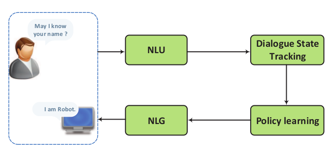在某些系统上,这两部分是分离的,在而在很多系统上,实际就是一个部分。也有一些资料把这部分称为Dialogue Management。这部分也被称为Belief Tracking & Policy Optimization / Policy Learning。