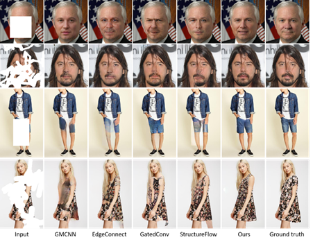 为了解决上述问题,智能感知中心团队提出了基于对比关系网络的图像补全算法。