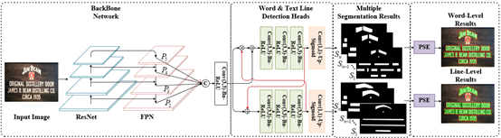 词检测和行检测是息息相关的。行检测器就像一个过滤器,可以将图片中的非文本区域过滤掉,在此基础上,词检测器只需要找到词语之间的间隙即可得到词检测结果。此外,词检测器可以为行检测器提供词语位置先验,在词检测器的帮助下,行检测器只需要将词语聚合成行即可得到行检测结果。