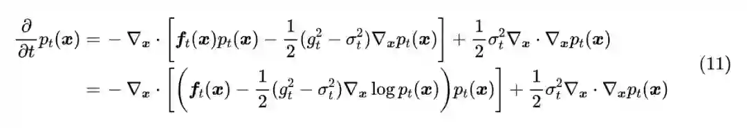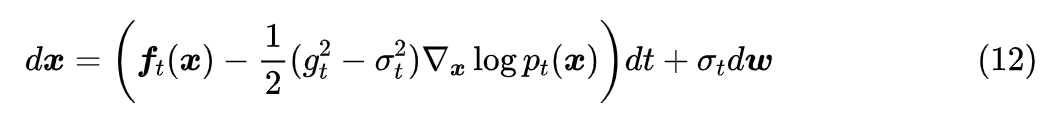 但是别忘了式 (10) 跟式 (11) 是完全等价的,所以这意味着式 (1) 和式 (12) 这两个随机微分方程所对应的边际分布