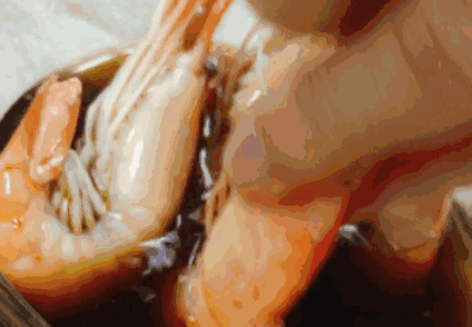 剥开虾壳就是饱满虾肉,锁满了美酒的芬芳,又带着虾肉特有的鲜甜,表面光滑到反光,诱人的橙红色下面就是玉白的虾肉!