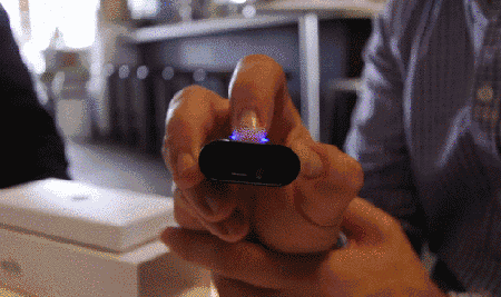 严格来说,SCIO 是世界首款手持分子传感仪。对,就是这个看上去有点像U 盘的家伙,使用起来很简单,只需按一下就行。怎么感觉像验钞机?!