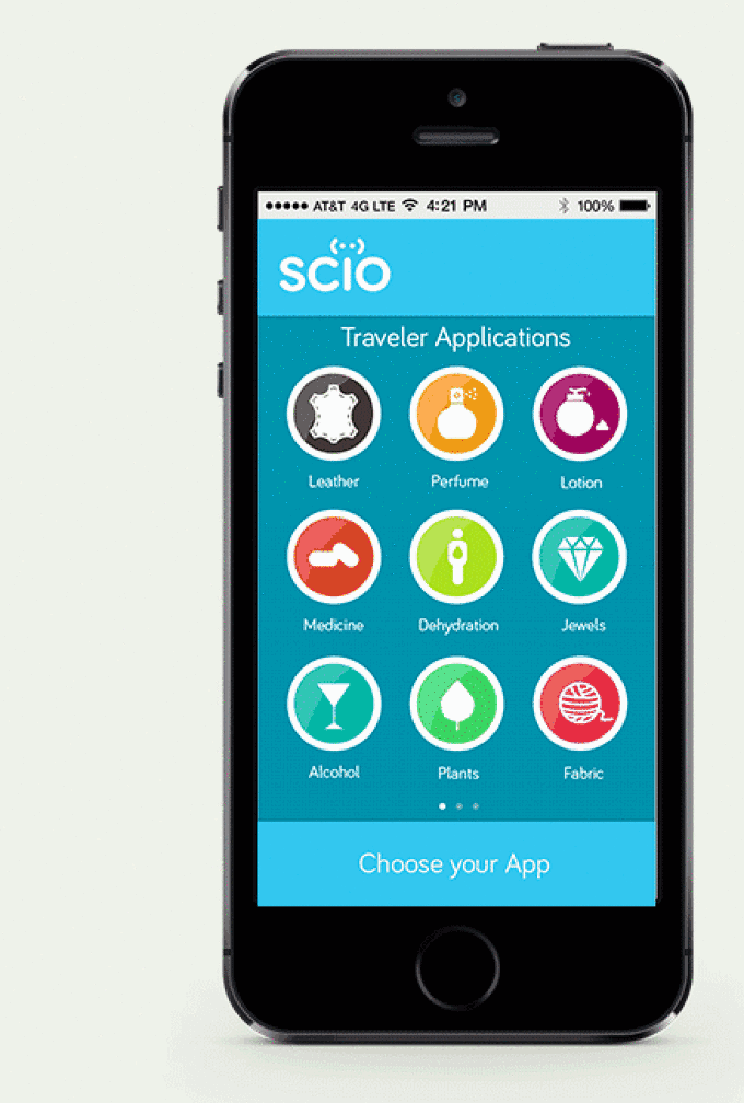 SCIO 通过蓝牙4.0和配对的 iOS 或 Android 智能手机连接,扫描后的数据会上传至云端实时处理数据。只要几秒钟,结果就会出现在手机上。另外,SCiO 扫描仪的 App 还包括一款 DIY 小应用,使任何用户都能扫描他们选择的材料,并分析其分子差异。