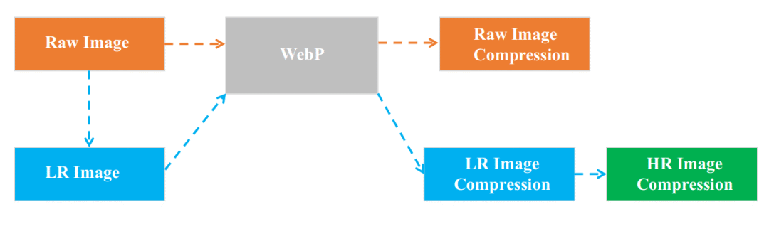 应用场景I:图片压缩与传输,即以较低的码率进行图像编码,在传输过程中可极大节省转发服务器的流量带宽,在客户端解码得到相对低清晰度的图片,最后通过超分辨重建技术处理获得高清晰度图片