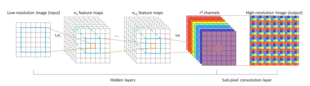 Sub-Pixel核心思想在于对于任意维度为H × W × C的图像,标准反卷积操作输出的特征图维度为rH × rW × C,其中r为超分辨系数即图片尺寸放大的倍数,而sub-pixel的输出特征图维度为H × W × C × r2,即令特征图与输入图片的尺寸保持一致,但增加卷积核的通道数,既使得输入图片中邻域像素点的信息得到有效利用,还避免了填充0引入的计算复杂度增加。