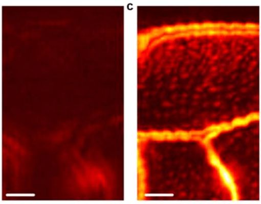 应用场景II:生物组织成像 左图:光声显微成像图像 右图:光声超分辨显微图像,细微的蜜蜂翅膀纹理清晰可见【5】