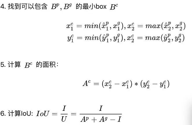 假如现在有两个任意性质 A,B,我们找到一个最小的封闭形状C,让C可以把A,B包含在内,然后我们计算C中没有覆盖A和B的面积占C总面积的比值,然后用A与B的IoU减去这个比值: