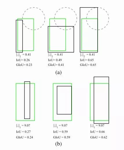 IoU是检测任务中最常用的指标,由于IoU是比值的概念,对目标物体的scale是不敏感的。然而检测任务中的BBox的回归损失(MSE loss, l1-smooth loss等)优化和IoU优化不是完全等价的(见下图)。